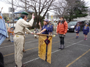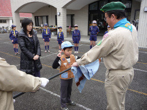 ビーバー隊 1名、カブ隊 2名の入隊式をしました。