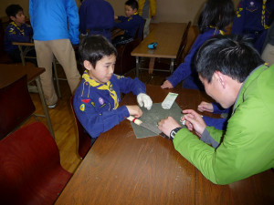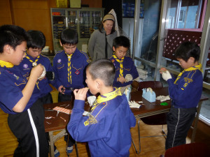 よびこ笛は、しの竹を使って笛を作ります。 全員がインストラクターの説明をよく聞き、真剣に作ります。 全員が大満足のすばらしい作品を作ることができました。 ありがとうございました!
