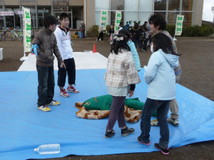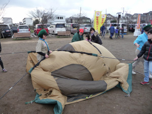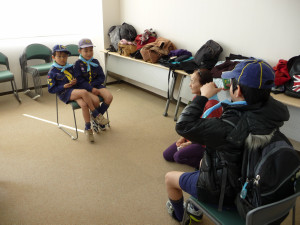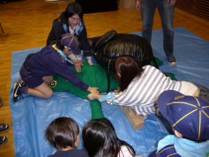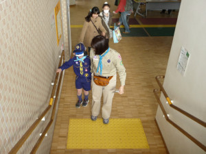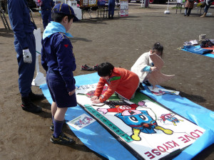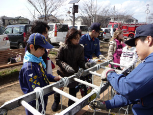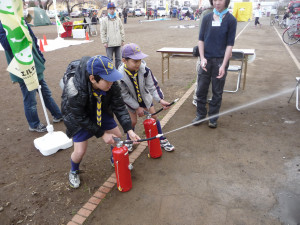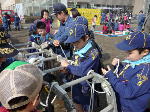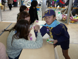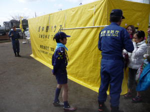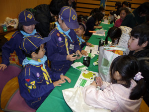 カブ隊は、かえっこバンクの店員、清瀬消防署のワークショップ・煙体験のお手伝いをします。