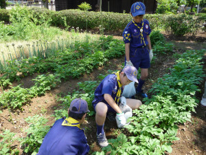 市内清掃の後は、農園の草取りをします。