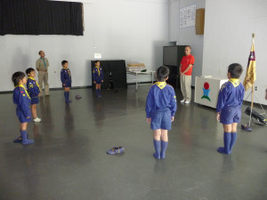 くまスカウトをボーイ隊の体験キャンプに送り出しです。