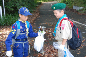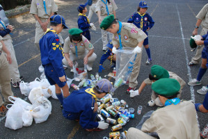 聖ヨゼフ老人ホームで楽しい時間を過ごしたあとは、 参加者全員が2グループに分かれて市内清掃をします。 小さいゴミも見落とさないようにします〜! 拾い集めたゴミの分別をします。