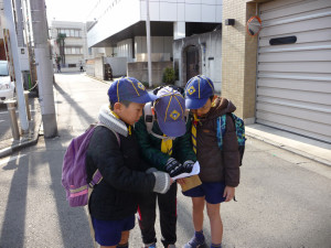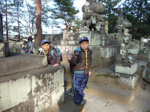 喜多院では、、リーダーが用意した石像の写真と同じ石像を五百羅漢の中から探します。