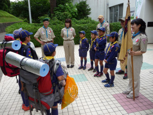くまスカウトをボーイ隊の体験キャンプに送り出しです。