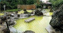 | 入口方向から 硫黄泉の湯船が8つもあり、 開放感は抜群です・・・・! |