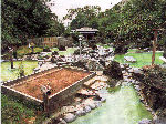 奥の方から 脱衣所横に、葦簾に囲まれた女性専用浴槽が1つあります。 あとの7つの浴槽と砂風呂は、混浴になっています・・・! |