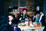 丸太小屋の中で