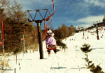 シングルリフトに乗る娘(小3)と息子(小1) |