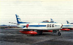 NORTH AMERICAN F86 SABER 朝鮮戦争で活躍したセイバーは、後に風に乗って飛ぶ最後の戦 闘機と呼ばれ、懐かしむファンも多い。 映画ではゴジラに完敗している。(関係ないか?) 自衛隊唯一のアクロバットチーム「ブルーインパルス」に長く 使用され、東京オリンピックのときに、大空に五輪を描いたの もセイバーを使用したブルーインパルスだったのは有名。 写真は「入間基地祭」で、筆者と島村氏で撮影した物です。 |